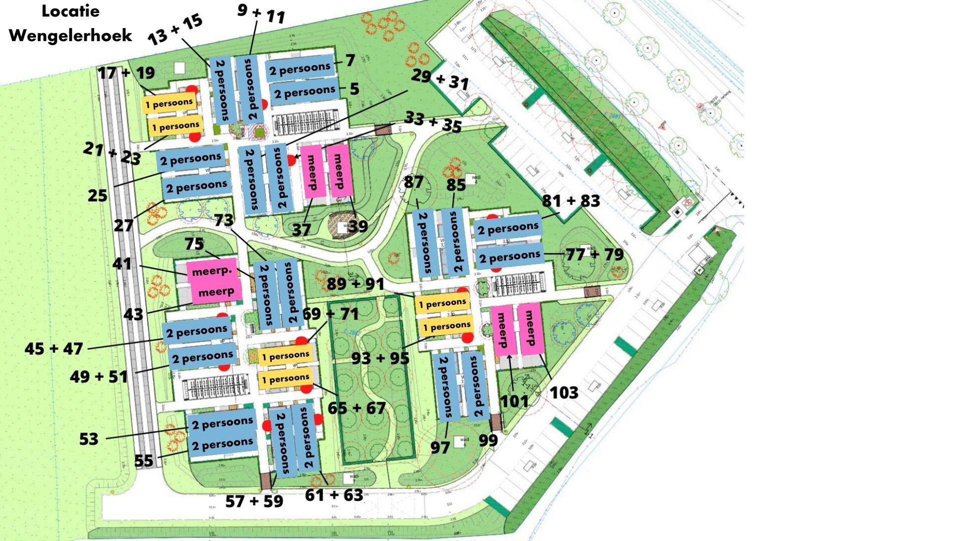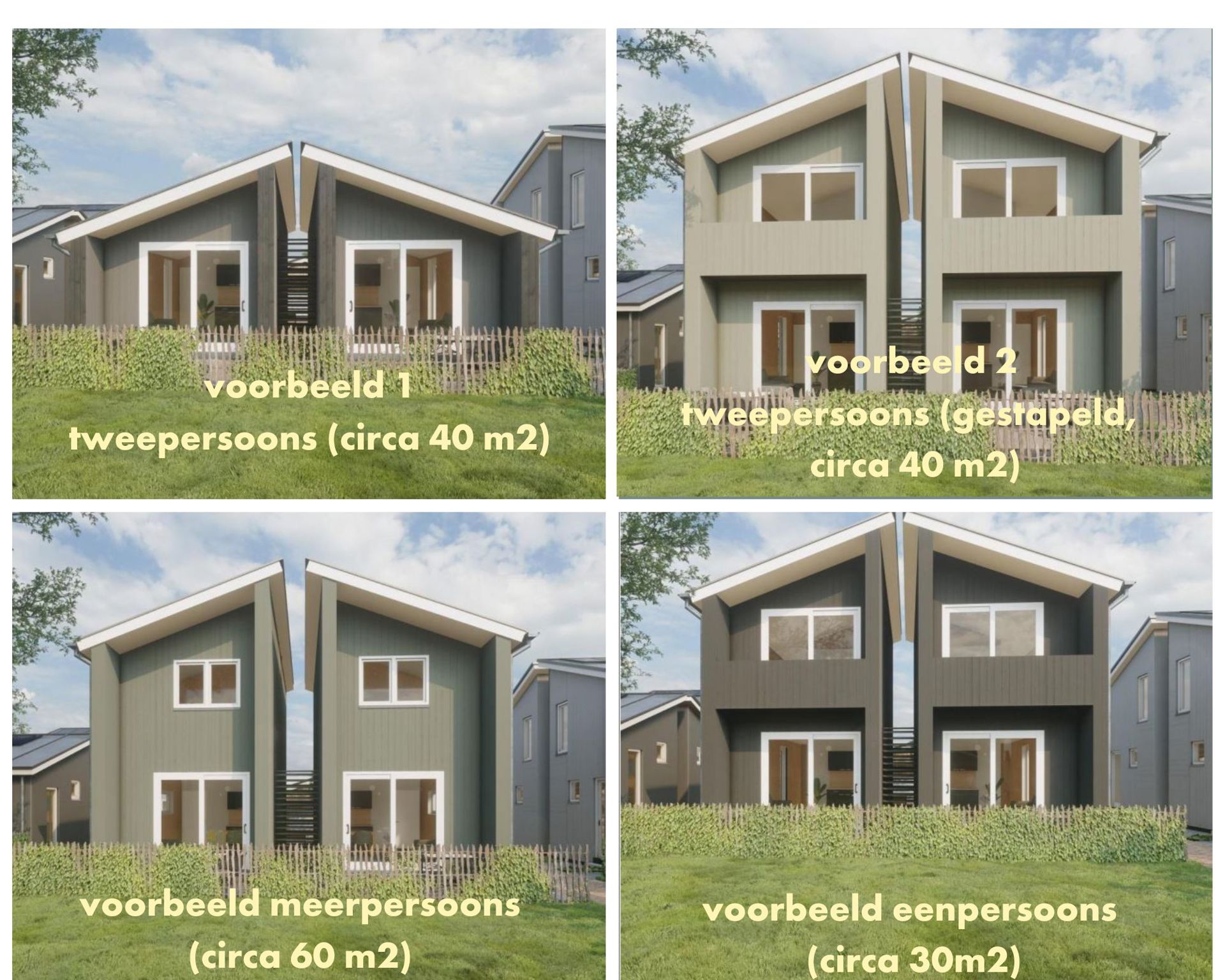 Er zijn drie typen woningen: eenpersoons, tweepersoons en meerpersoons