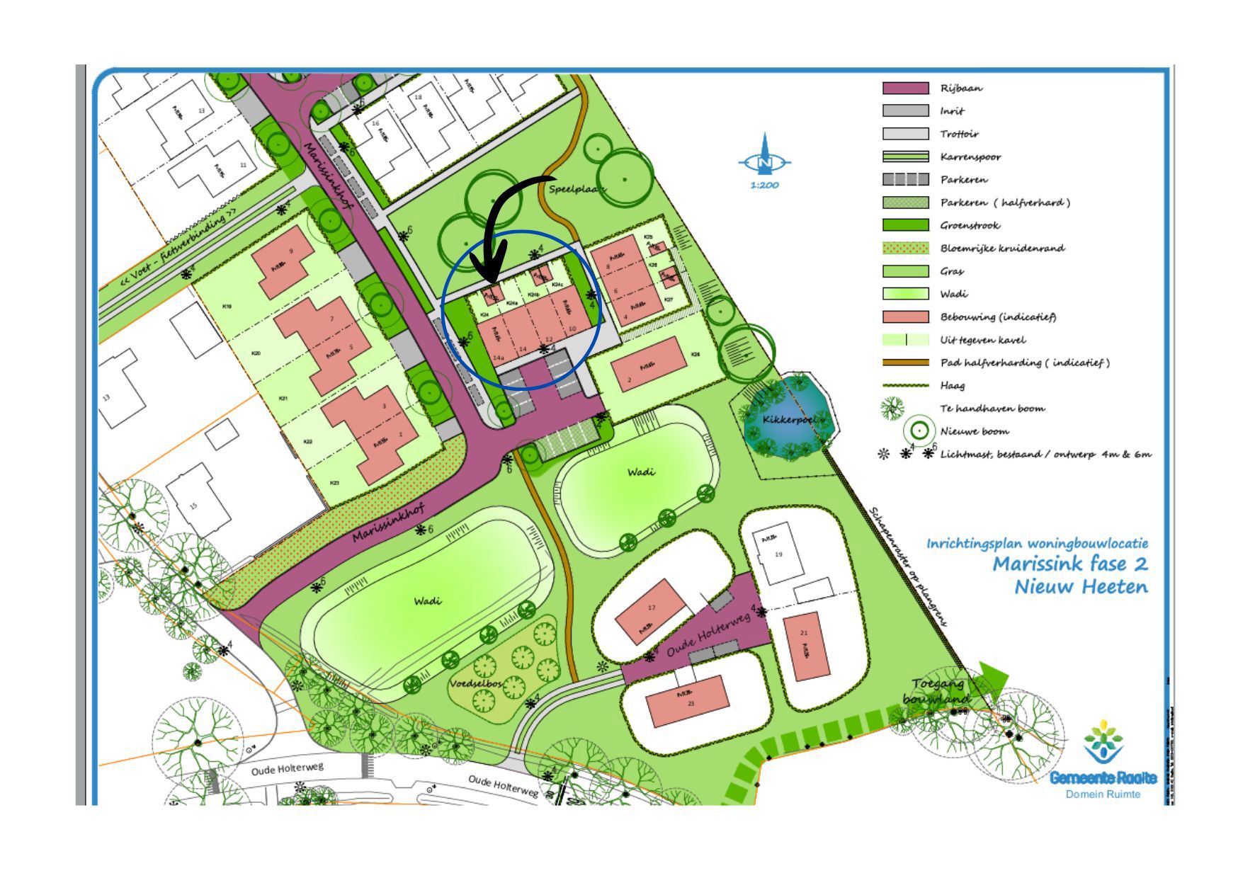 De 4 woningen staan in het omcirkelde deel.