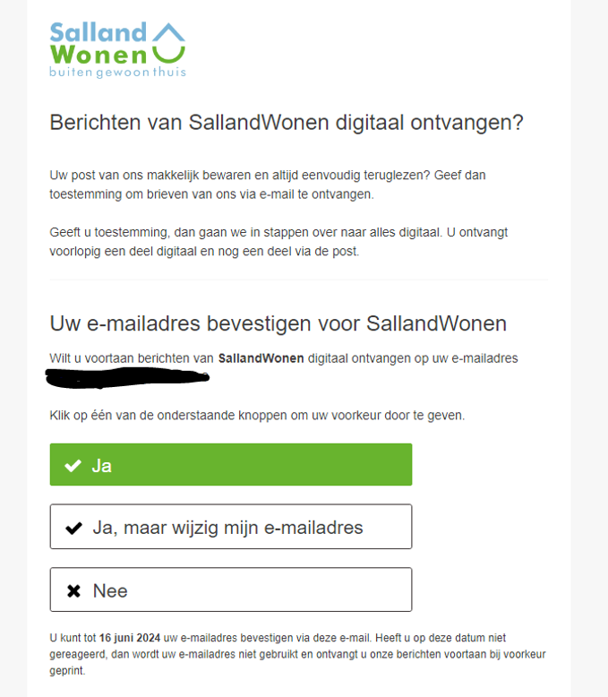 Zie hieronder het voorbeeld van de email die u van SallandWonen hebt ontvangen:
