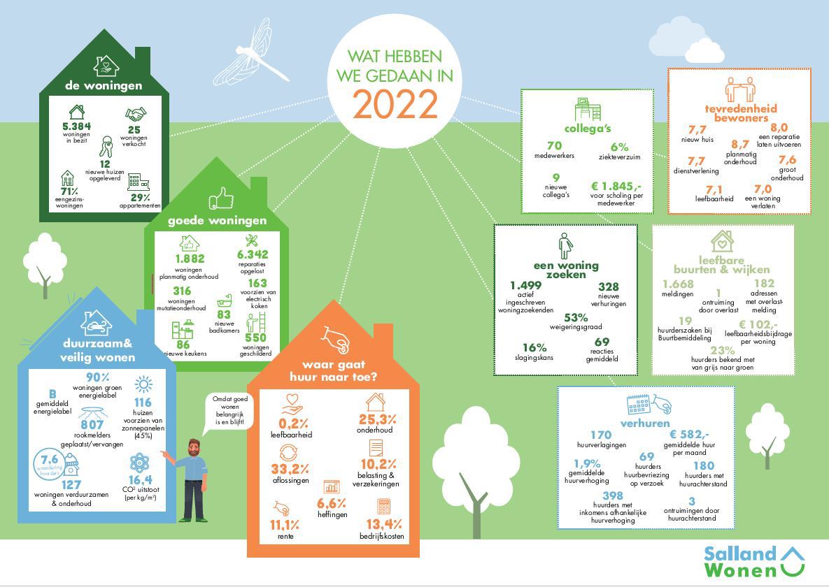 2022 kenmerkt zich door turbulente, verdrietige en onzekere tijden. Ook in deze tijden bleef betaalbaar en duurzaam wonen voor onze huurders de inzet. Terugkijkend hebben we het afgelopen jaar belangrijke doelen bereikt. Zo verduurzaamden we 127 woningen. We bouwden onze Buitengewoonthuiswoningen voor jong en oud. En we werkten samen met de gemeenten om de wooncrisis te bestrijden door tijdelijke huisvesting voor vluchtelingen uit Oekraïne te realiseren en door versneld statushouders op te vangen. Daar waar procedures voor vertraging zorgden, werkten we samen aan oplossingen. We hebben er alle vertrouwen in dat we onze projecten gaan uitvoeren, al is het regelmatig veel later dan gepland en gewild.