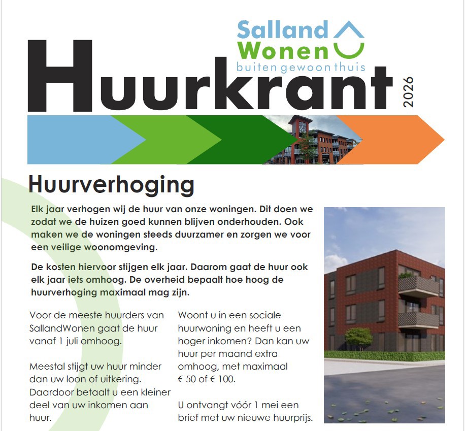 De huurverhoging van 2026 is bekend. In onze huurkrant leest u meer informatie.